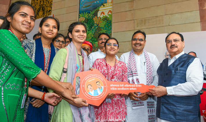 केंद्रीय स्वास्थ्य एवं परिवार कल्याण मंत्री जेपी नड्डा एवं मुख्यमंत्री भजनलाल शर्मा ने शनिवार को राजस्थान इंटरनेशनल सेंटर में देवी अहिल्याबाई होल्कर की 300 वीं जयंती पर आयोजित महिला सशक्तिकरण सम्मेलन को संबोधित किया। कार्यक्रम में राज्य की नारी शक्ति को विभिन्न योजनाओं के तहत कई सौगातें दी गई।